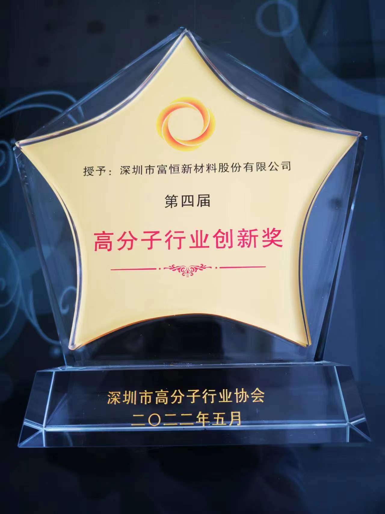 2022年5月25日我司在深圳市高分子行業(yè)協(xié)會2022年春茗會上榮獲第一屆高分子行業(yè)低碳獎、第四屆高分子行業(yè)創(chuàng)新獎。